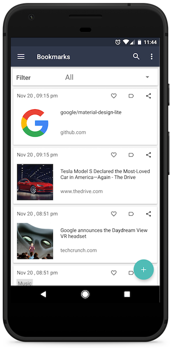 Easily add bookmarks from any app. Use favorites, tags to organize your bookmarks.